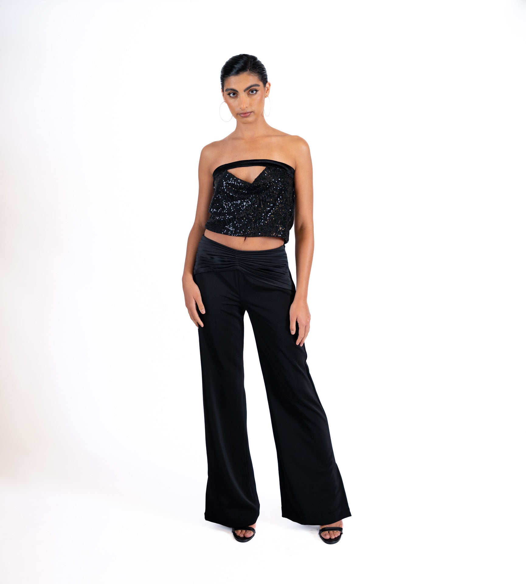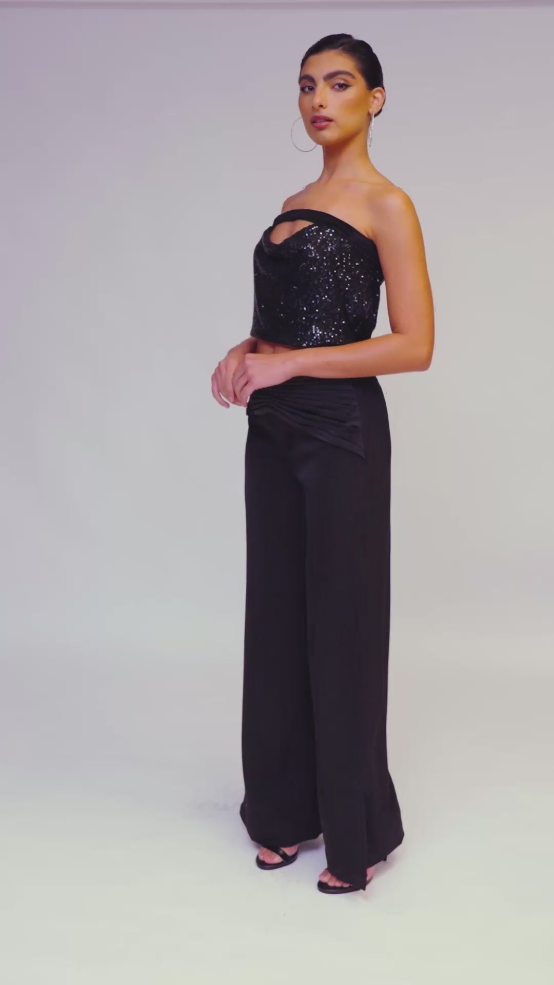 The Dusk Flow Wide-Leg Pants are designed to move with you, offering a silhouette that exudes sophistication. The pleated high-waist detail cinches the waist beautifully, making them a perfect choice for winter evenings. Pair with a sequin top or silk blouse for a timeless look.
