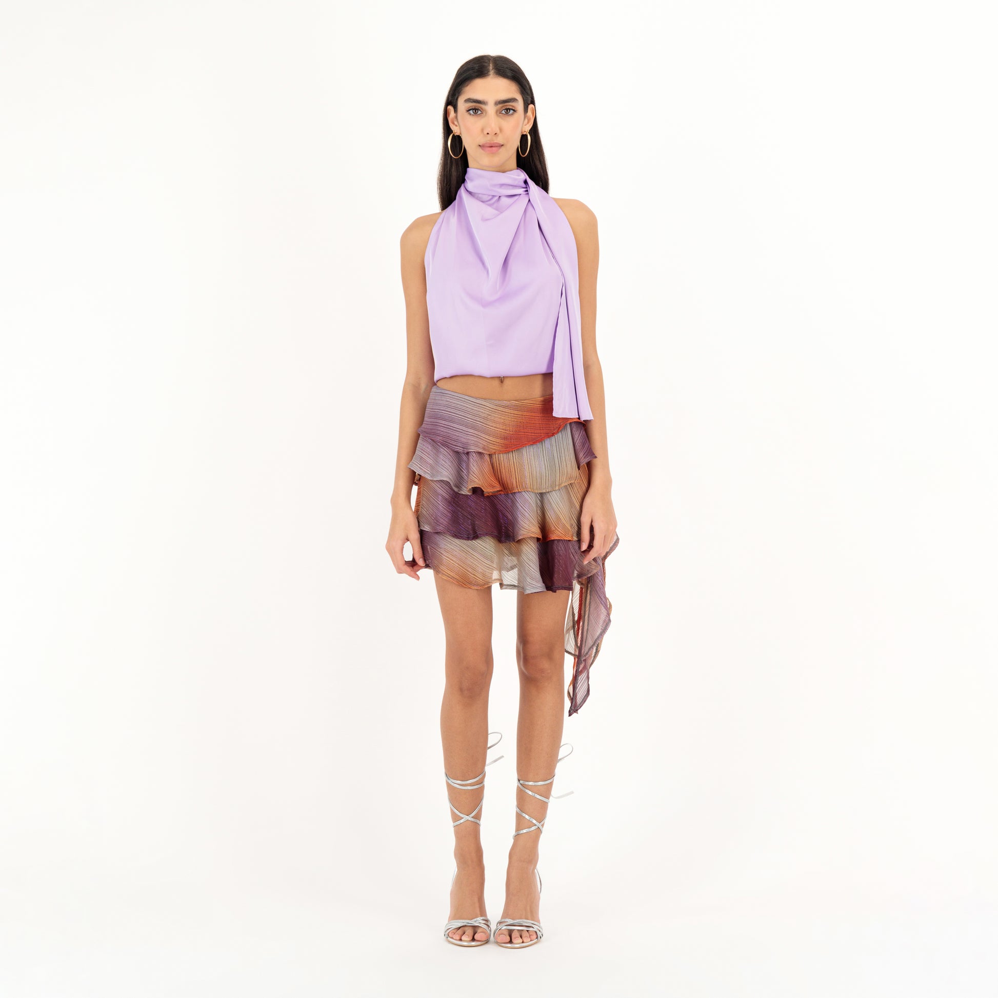 Made from beautiful chiffon with delicate gold touches, this skirt is incredibly versatile and can be paired with multiple tops. For a perfect match, we recommend pairing it with our Cyrene Top.