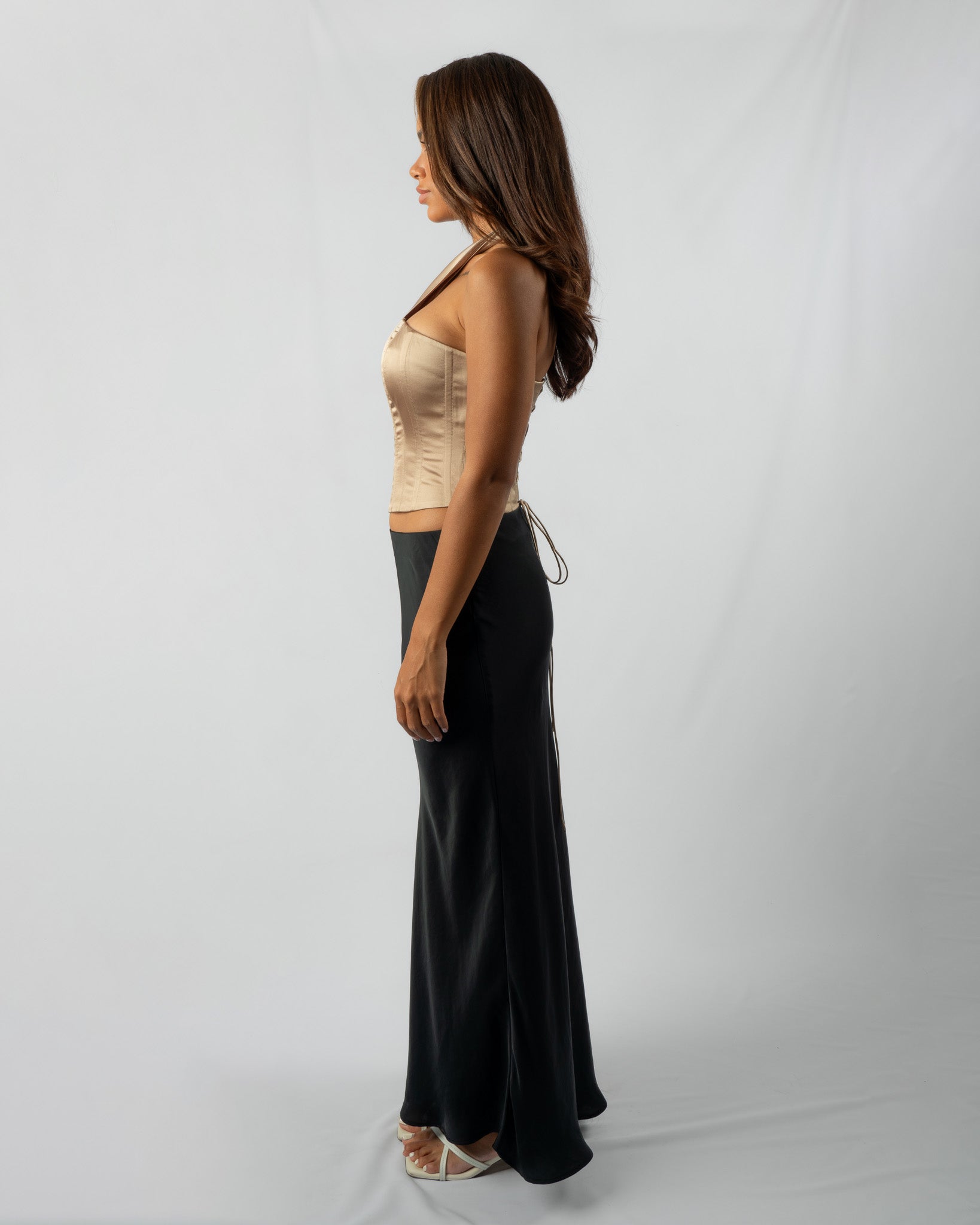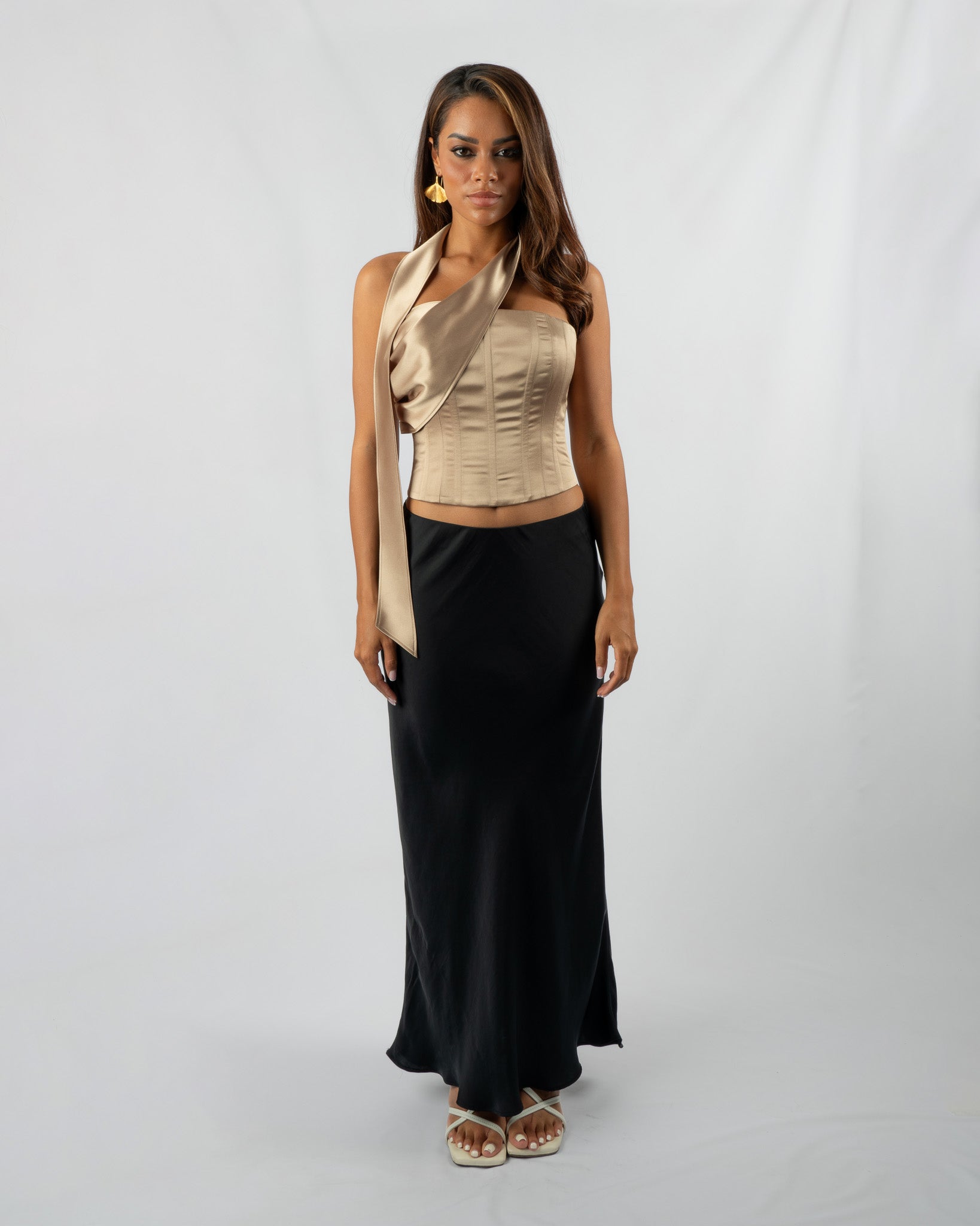 The Lila Corset Top is the ultimate addition to your closet for a touch of allure! Featuring an attachable scarf detail on the side, our Lila Corset stands out with its unique design. The stunning dusty gold color offers versatility, easily complementing various bottoms. Supported by boning, the corset accentuates your waistline, giving you a sleek, defined look. The adjustable back lace up closure is perfect to adjust to your liking.