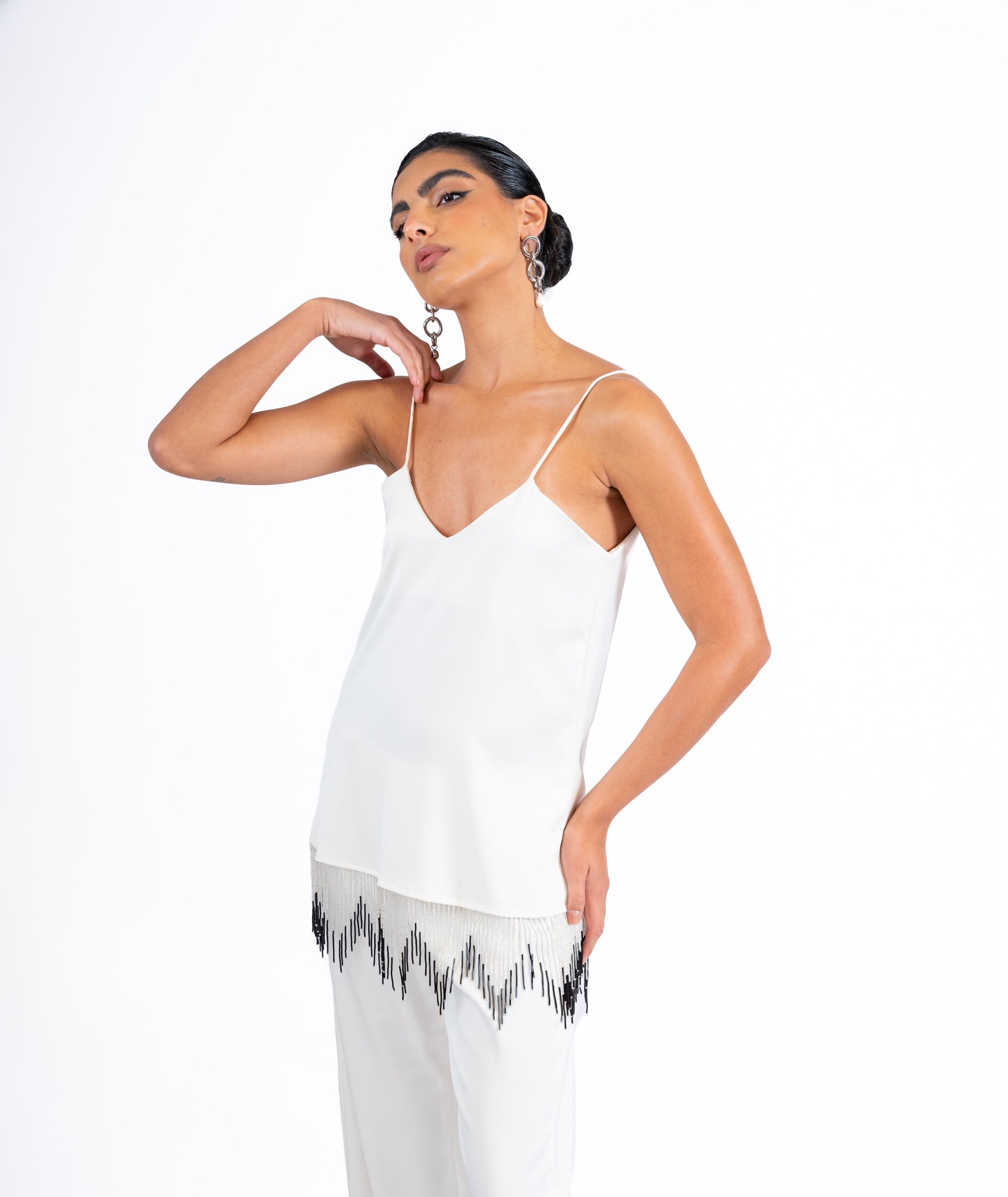 White & Black Versions: Subtle embellishments at the tops hem add a touch of refined glamour, perfect for elevating your look to evening or occasionwear.
