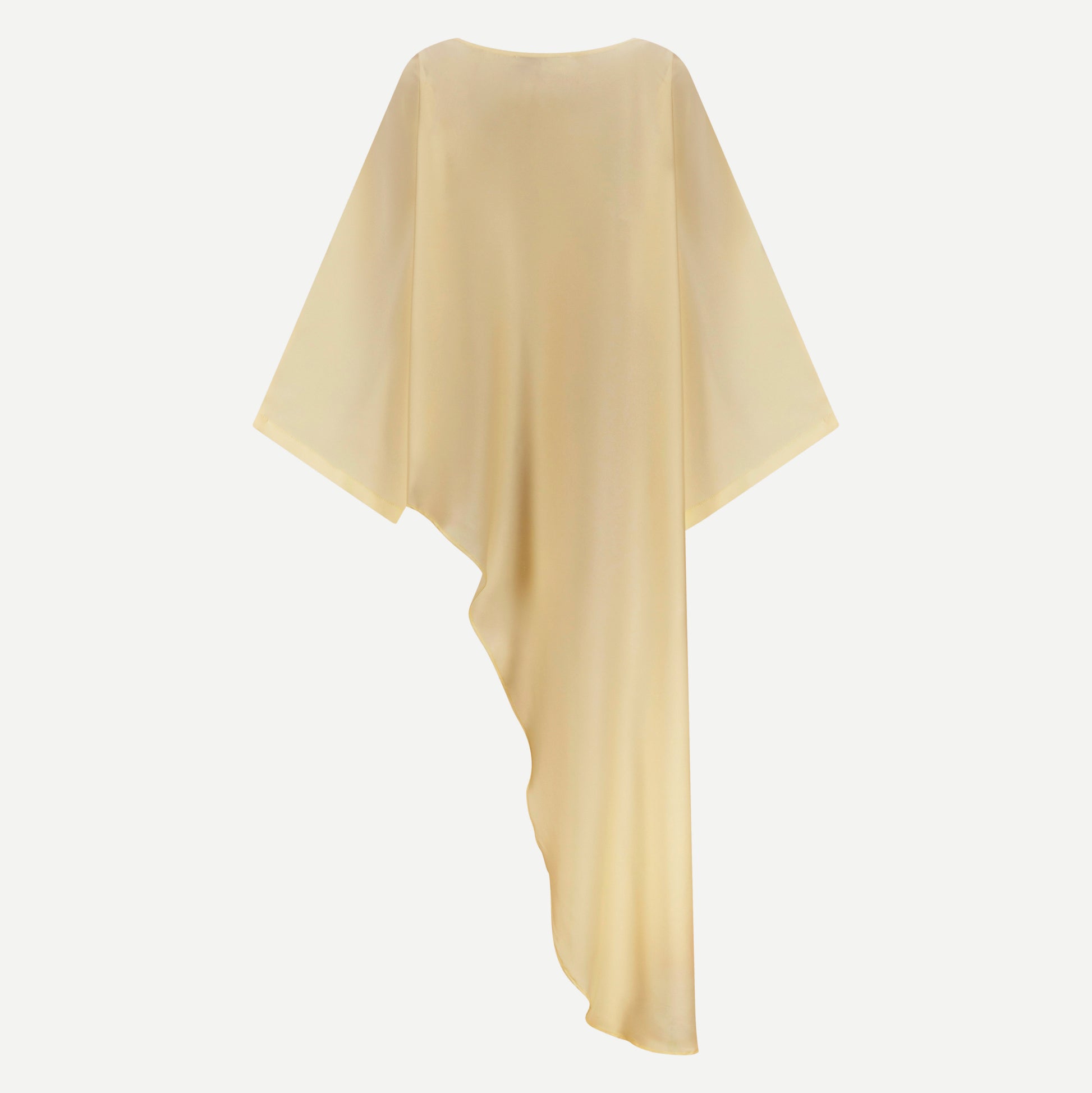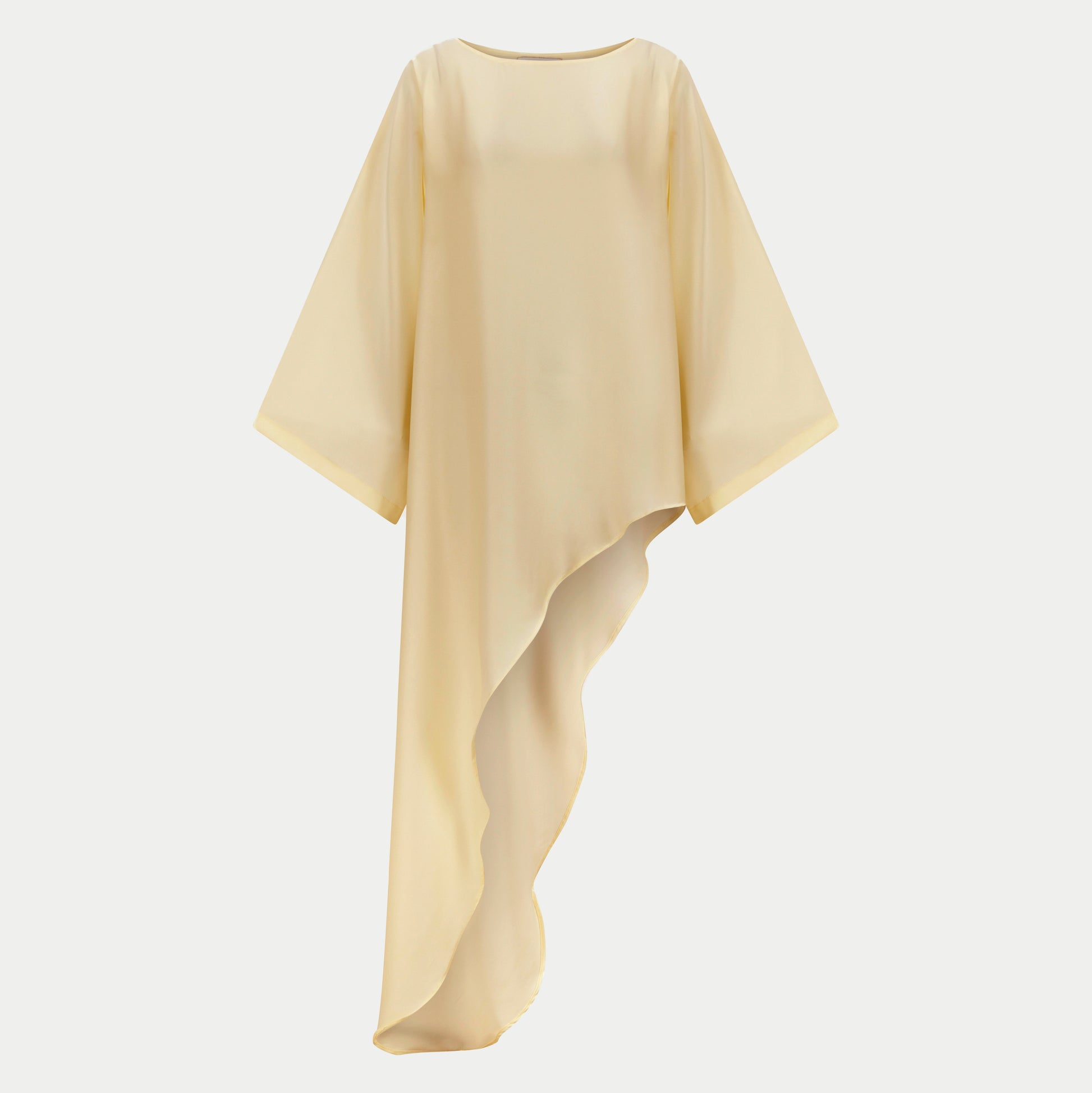 A modern essential with a statement twist, our Zeina Top is made of high quality satin features a fluid, asymmetrical hemline that creates a striking silhouette. The soft, textured satin drapes effortlessly, while the wide sleeves enhance its relaxed yet elegant appeal. Designed for both day and evening wear, this top pairs beautifully with denim jeans or flowing skirts, making it a versatile addition to any wardrobe.